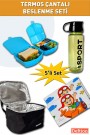 5'li Erkek Çocuk Okul Beslenme Çantası Seti Kutusu Suluğu Matarası Örtüsü Termoslu Termal