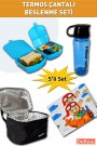 5'li Erkek Çocuk Okul Beslenme Çantası Seti Kutusu Suluğu Matarası Örtüsü Termoslu Termal